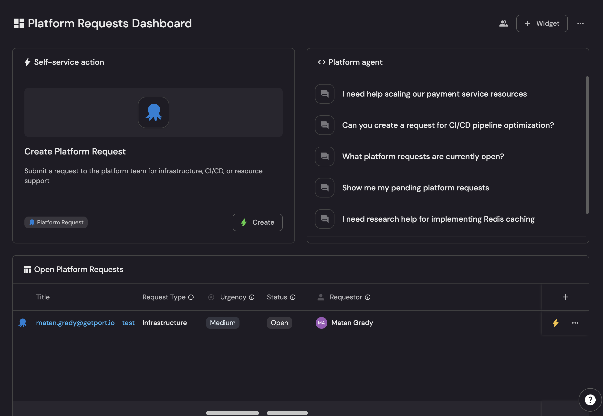 - Automated Request Fulfillment: For common and simple requests, you can enhance the AI agent by allowing it to trigger other self-service actions that fulfill the request automatically, bypassing the manual triage process. For example, if you have an action to scaffold a new service, the agent can trigger it directly for such requests.