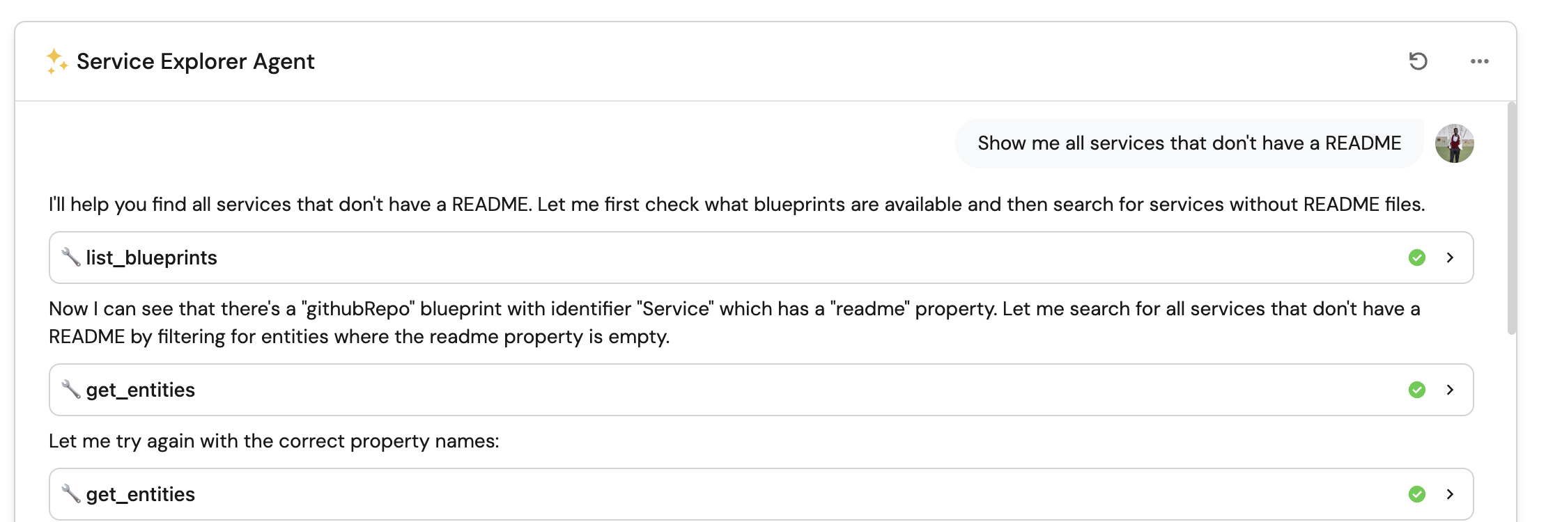 To make the Service Explorer more powerful, you can add more blueprints to the allowed_blueprints array in the agent's configuration. The more context you provide, the more detailed and accurate the agent's responses will be.